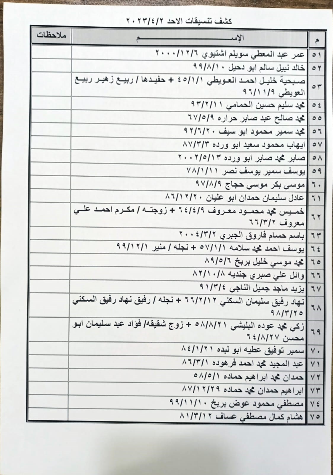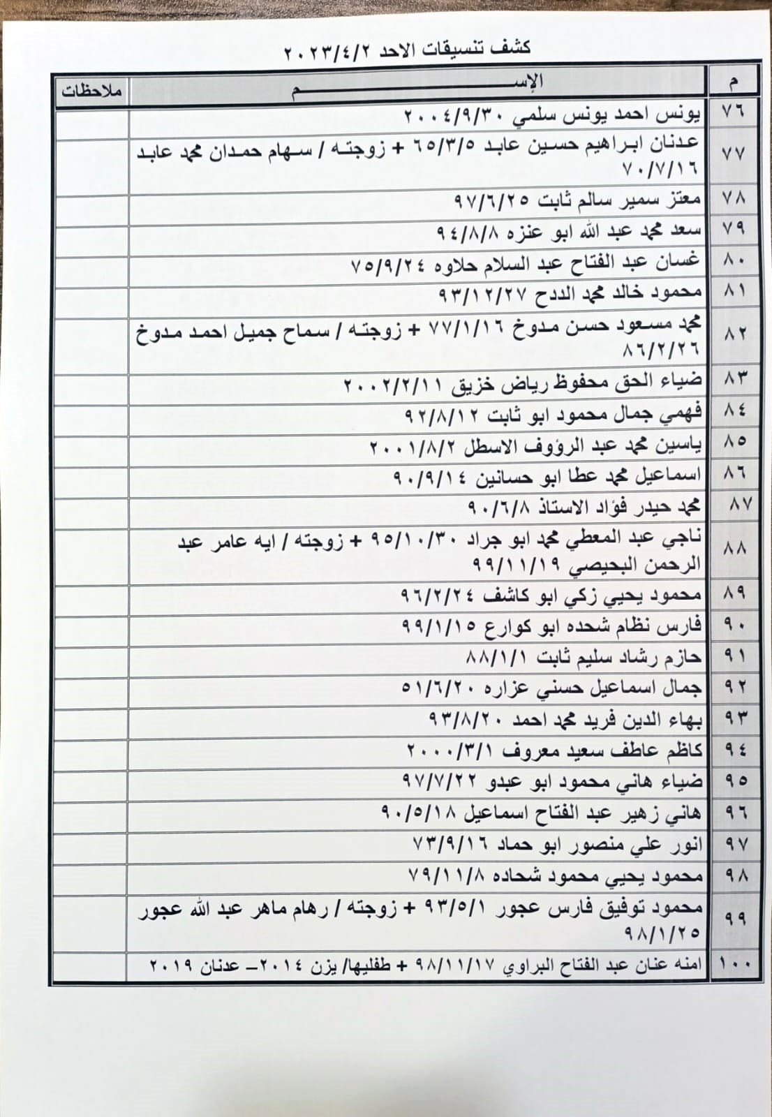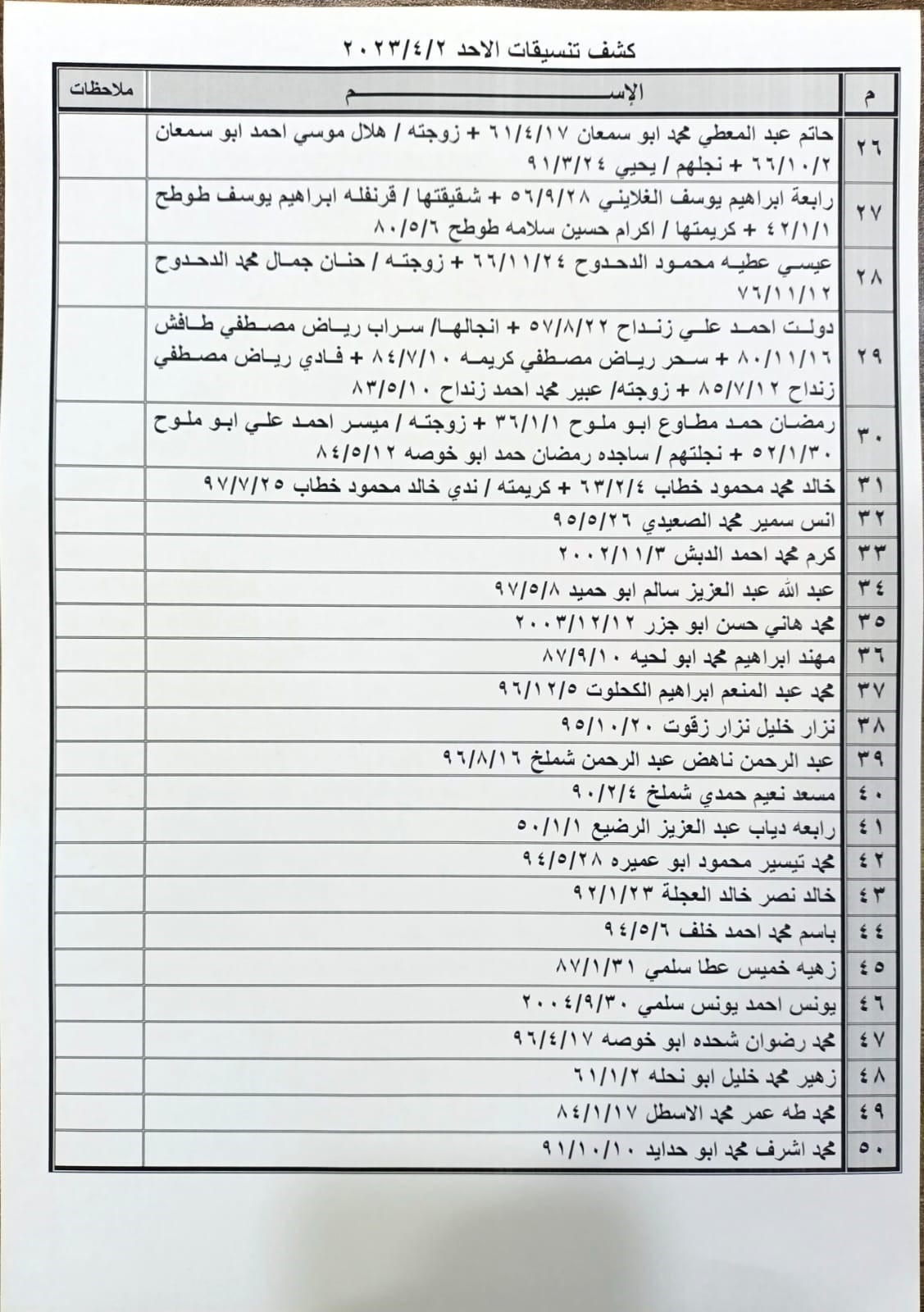 أعلنت الهيئة العامة للمعابر والحدود، في وزارة الداخلية بغزة، اليوم الجمعة، عن كشف تنسيقات مصرية للسفر عبر معبر رفح البري يوم الأحد 2 أبريل 2023. ونوهت داخلية غزة، إلى المسافرين المدرج أسمائهم في الكشف التواجد عند الساعة السابعة صباحاُ في الصالة الخارجية للمعبر لتسهيل سفرهم.