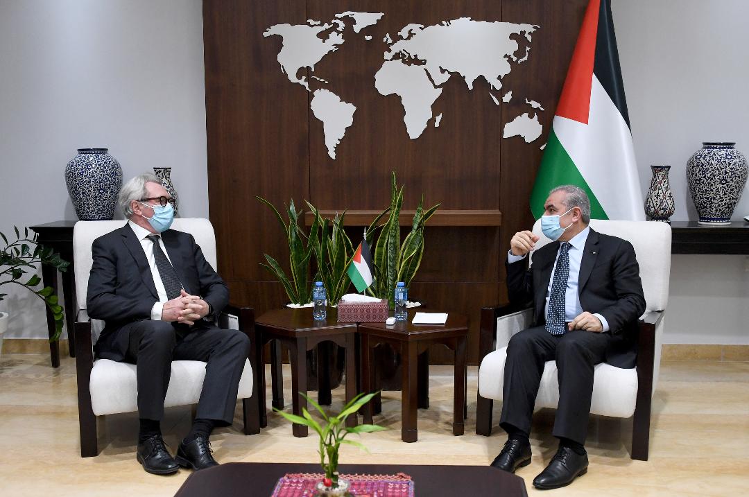 ناقش رئيس الوزراء محمد اشتية مع المبعوث النرويجي الخاص لعملية السلام جون هينسين، بحضور ممثلة النرويج لدى فلسطين تورن فيستي، آخر التطورات السياسية، و ترتيبات اجتماع لجنة تنسيق مساعدات الدول المانحة (AHLC).
