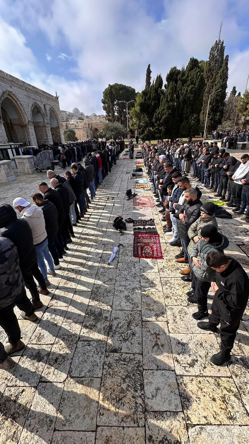 أدى عشرات الآلاف من الفلسطينيين صلاة الجمعة في المسجد الأقصى المبارك، بعدما توافدوا منذ ساعات الصباح رغم برودة الطقس والإجراءات العسكرية المشددة التي تفرضها سلطات الاحتلال الإسرائيلي على مداخل البلدة القديمة وأبواب المسجد.