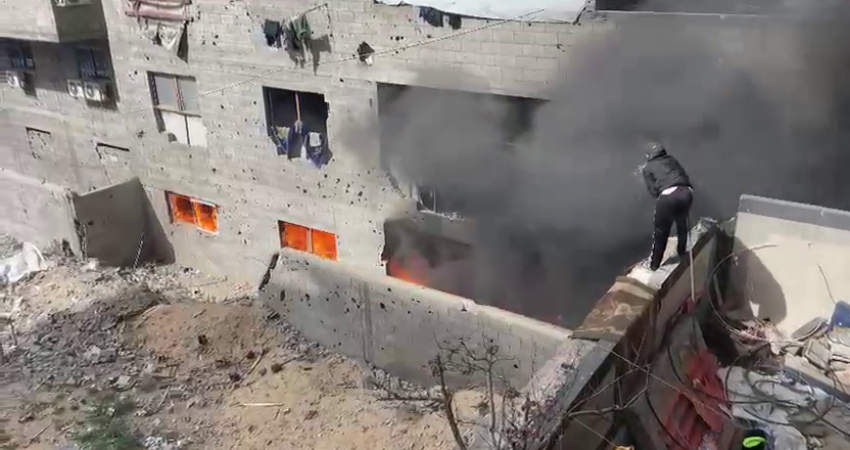 ووفق شهود عيان، هرع عدد من الشبان إلى موقع الحريق للمساعدة في عمليات الإخماد مستخدمين خرطوم مياه منزلي، في ظل نقص حاد في الإمكانيات والمعدات لدى طواقم الدفاع المدني، نتيجة تداعيات الحرب الإسرائيلية واستمرار منع إدخال الإمدادات والمعدات اللازمة.