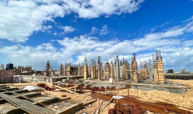 ووفق وزارة الأشغال في غزة وصل العمل في المدن المصرية لإنشاء الطوابق الأولى من العمارات السكنية، بعد صب وتجهيز الأرضيات.