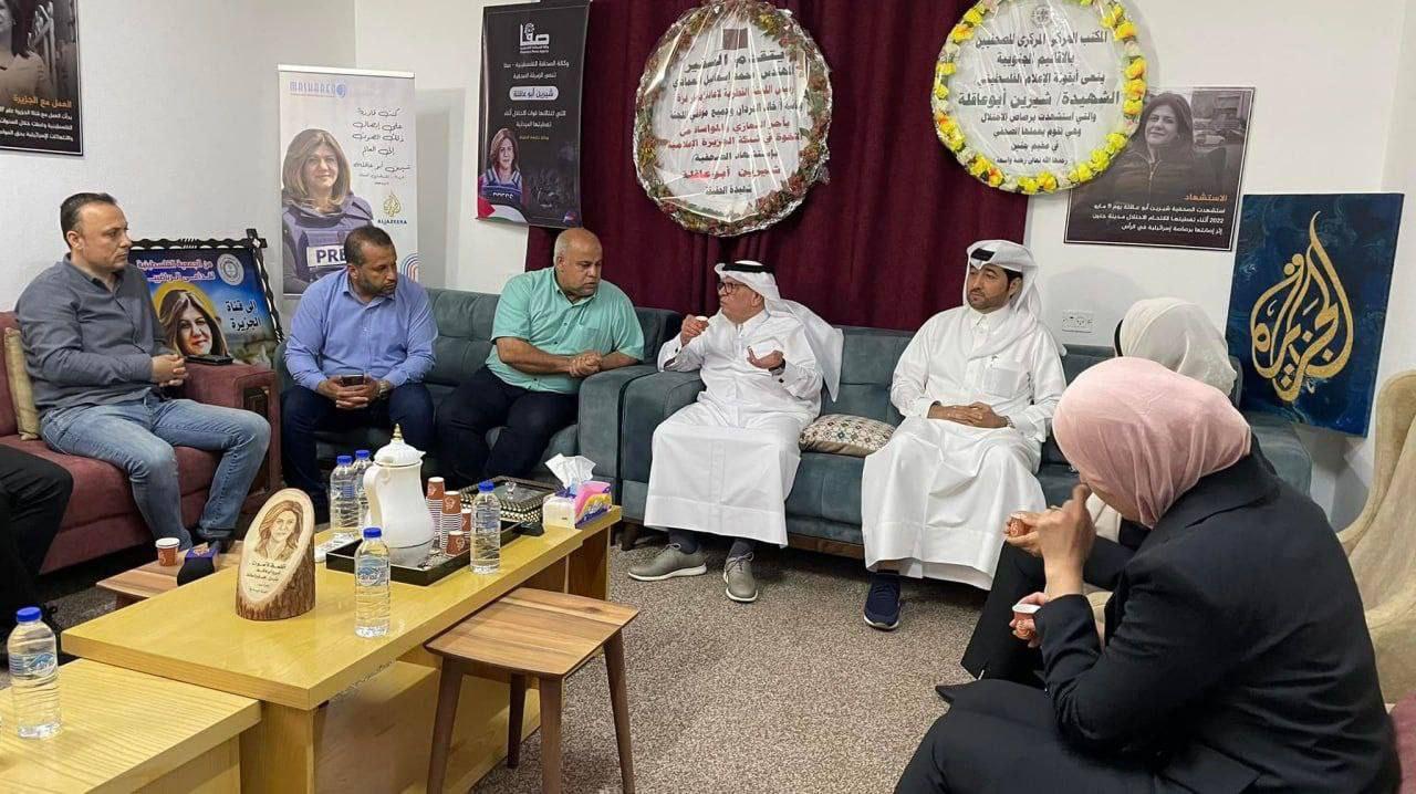 قدم السفير محمد العمادي رئيس اللجنة القطرية لإعادة إعمار غزة، واجب العزاء لمكتب قناة الجزيرة بمدينة غزة في اغتيال الصحافية شيرين أبو عاقلة، التي تعرضت للقتل على يد قوات الاحتلال الإسرائيلي في اقتحام مخيم جنين.