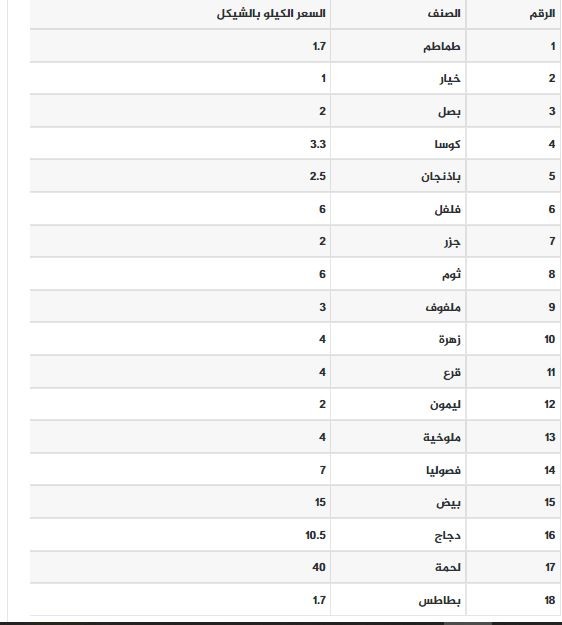 ونوهت الزراعة إلى أن أسعار المنتجات يجب ألا تزيد عن المدونة أدناه للمستهلك، والتي جاءت على النحو التالي: