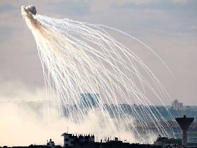 ويبرر جيش الاحتلال استخدام الفسفور الابيض بقصف أهدافا لحزب الله في جنوب لبنان.