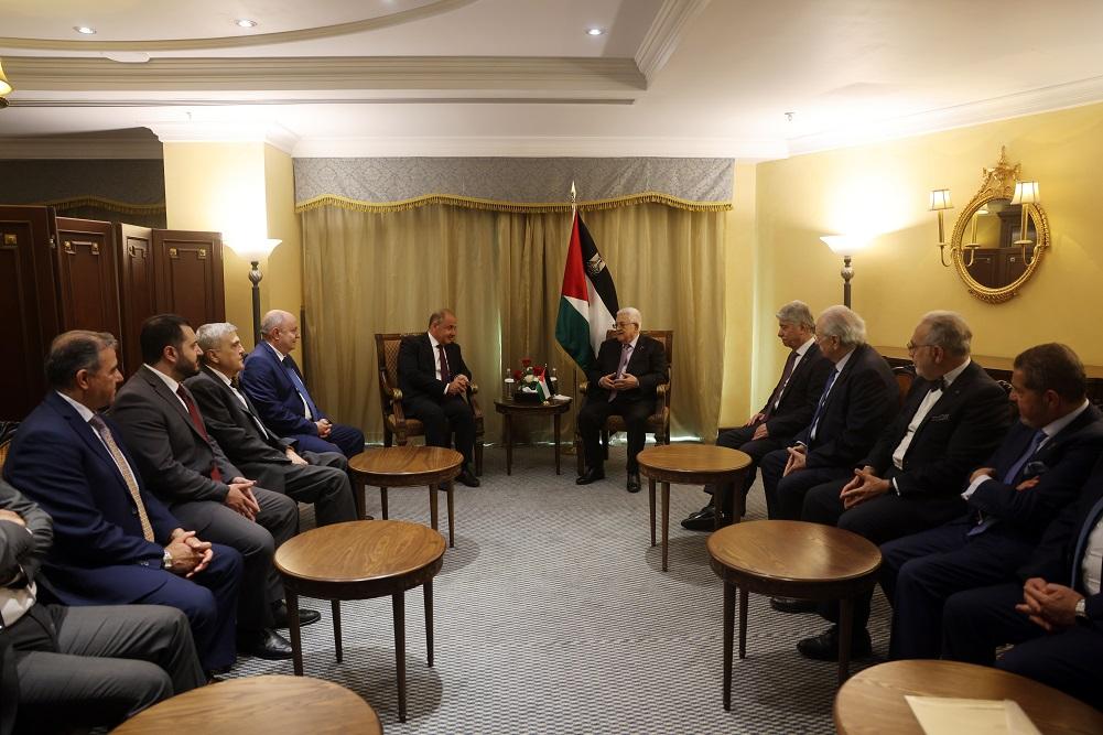 بحث الرئيس الفلسطيني محمود عباس في بيروت، الأربعاء، تطورات الملف الفلسطيني مع ممثلي وفود عربية ومسؤولة أممية.