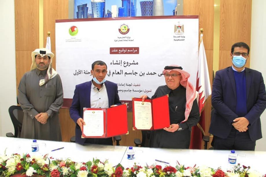 وقع السفير القطري محمد العمادي، اليوم السبت، عقد اتفاق مشروع انشاء مستشفى "الشيخ جاسم بن حمد" العام بمدينة رفح جنوب قطاع غزة، تمهيدًا لوضع حجر الأساس للمشروع الاثنين المقبل.